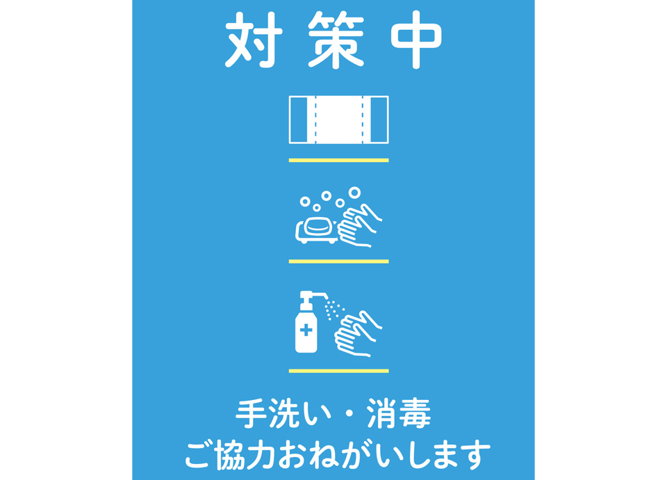 リスク分散のため、勤務時間・人数の調整のほか、「マスクの常時着用」「お客様ごと、定期的な手洗いの実施」「出勤前の体温体調の確認」を徹底しております。