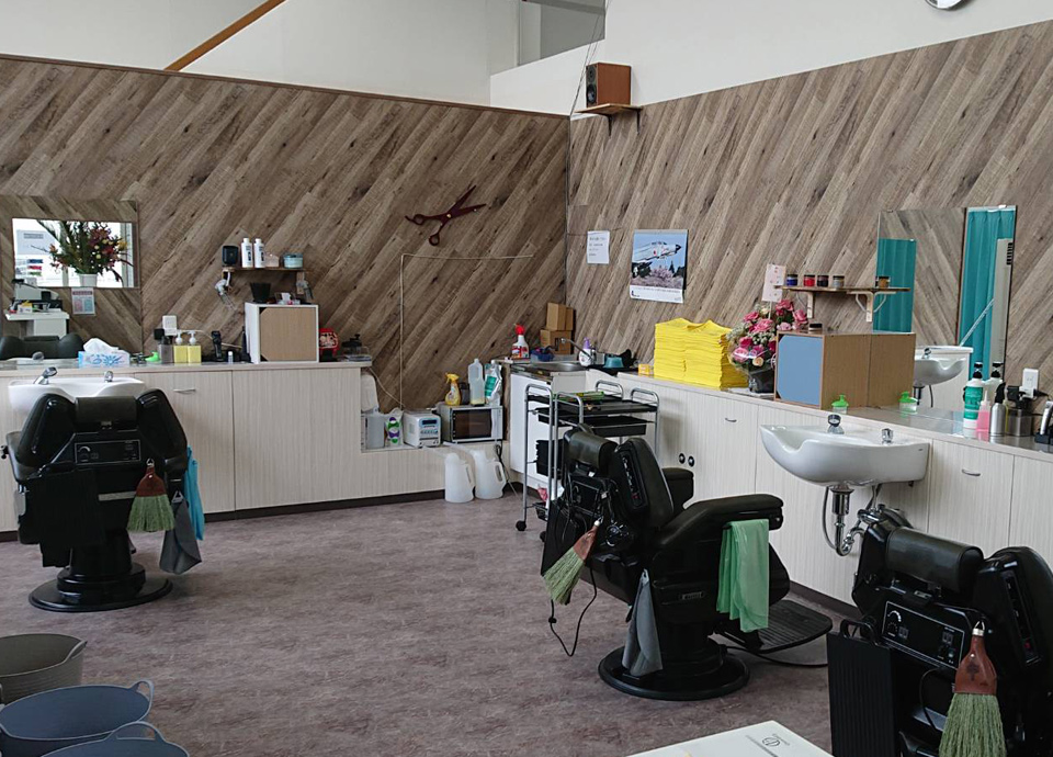 理容室・美容室ともに「くつろぎのスペース」を作るため、開店当初から席間隔を1メートル以上離して設置しています。待合いスペースは、間隔をあけて設置しています。
